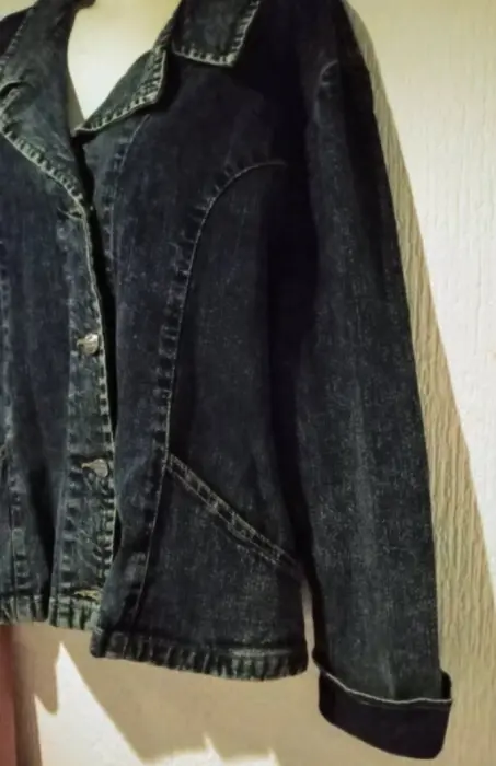 Chamarra de mezclilla casual tipo blazer corte en v con botones de metal talla 34 sin detalles está en perfectas condiciones