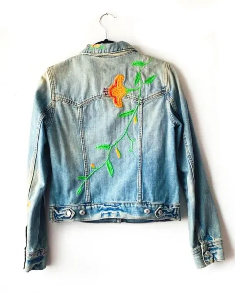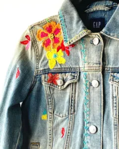 Chamarra de mezclilla bordada vintage Gap. Chamarra de mezclilla bordada y deslavada vintage de la marca Gap talla S. El producto es nuevo sin etiqueta de precio en excelentes condiciones, sin detalles. Proviene de un hogar libre de humo de tabaco y mascotas.100% algodón