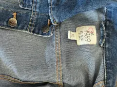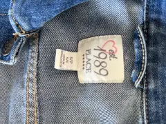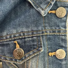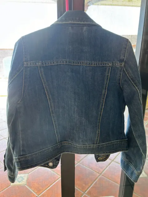 Chamarra clásica de mezclilla con botones grabados de la marca. Sin detalles. Es talla de niña, queda para edades 4-6 años.