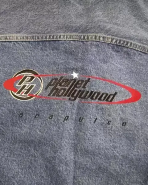 Chamarra de Mezclilla Planet Hollywood Acapulco Talla L✅ Llévate un accesorio de regalo en cada compra 🛍️