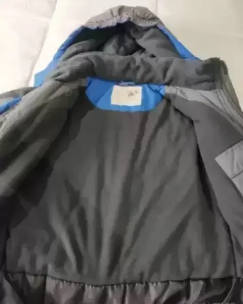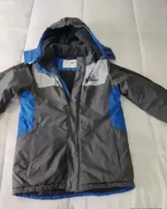 Chamarra de niño - kids. Chamarra calientita para niño talla 12, color gris con azul, con gorro,tela polar por dentro, en muy buenas condiciones.