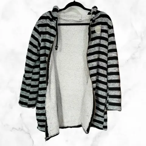 Toda la chamarra está forrada de peluche de borrego, hasta las mangasMedidas:50 cm Axila a axila55 cm manga77 cm de largo