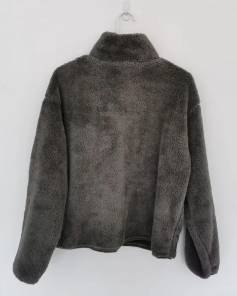Abrigo de peluche muy, muy suave y calientito. Afectando. Cuello alto. Siper al pecho expuesto. Es amplio. Talla S.