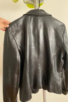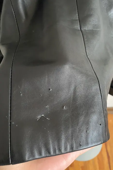 Hermosa chamarra de cuero, calientita.Único detalle es que tienes unas rasgaduras en la parte trasera, visible en las fotos.