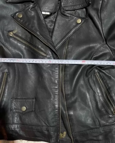 Excelente chamarra tipo motociclista talla L, pero viene mejor a talla M, no está roto el forro, la piel está en muy buenas condiciones