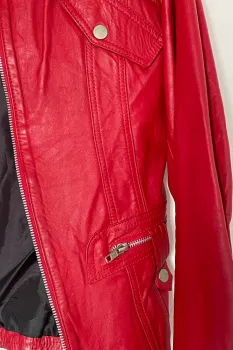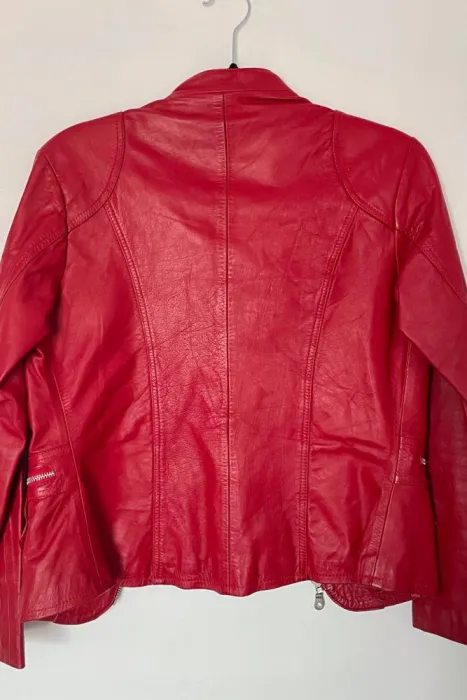 Chamarra de piel (no vinipiel) talla MColor rojo brillanteResistente al fríoPerfecta para salir de noche o agregarle color a tu outfit negro.