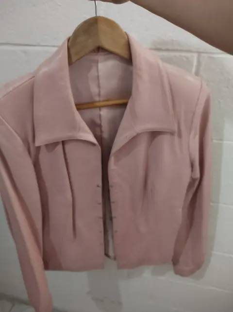 Chamarra de piel color rosa pálido talla 34 con perruno detalle se mancho de una solapa con tinta pero en general excelente estado poco uso se puede mandar pintar
