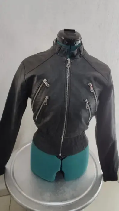 Chamarra de piel tipo chopper ♣️. Linda chamarra 100% piel de cordero, está forrada tiene 4 bolsillos funcionales al frente en perfectas condiciones.. medidas: hombros-40cm./axila a axila-43cm./largo-52cm./largo manga-57cm.