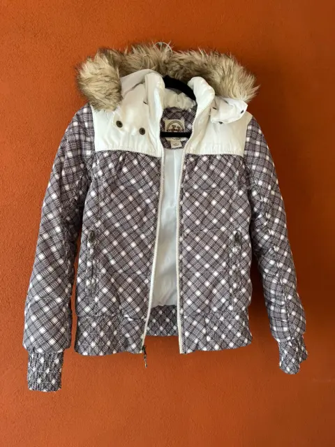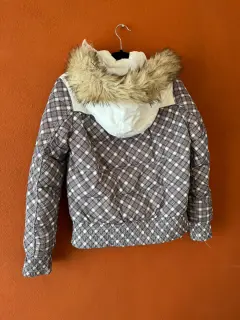 Padrísima chamarra con relleno de plumas talla M súper calientita , con gorra, marca Hydraulic ! 😄Colores blanco con vino …Precio en tienda $1750 En perfecto estado !!