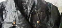 Chamarra de vinipiel. Chamarra de vinipiel, con cierres en bolsas y botonadura al frente y detrás, a la cintura