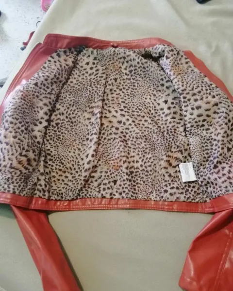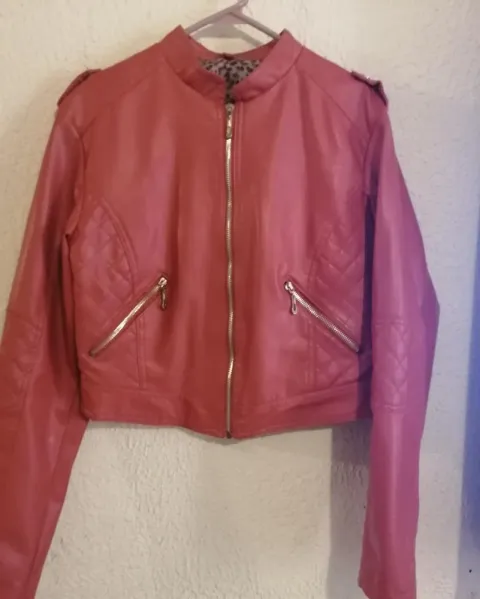 Chamarra de vinipiel color mamey. Bonita chamarra de vinipiel con forro de animal print en perfecto estado queda corte a la cintura mínimos detalles