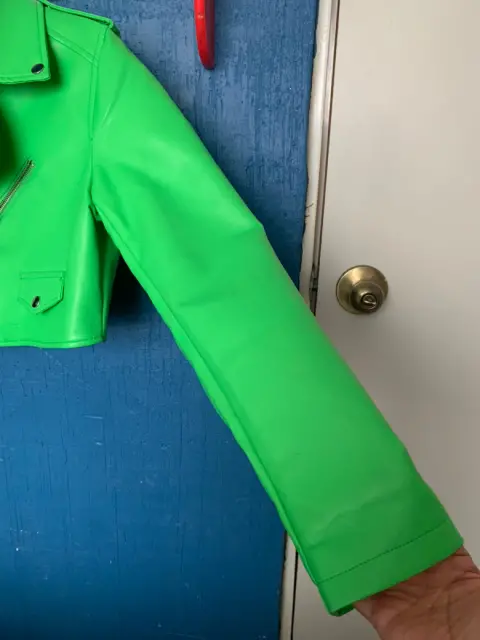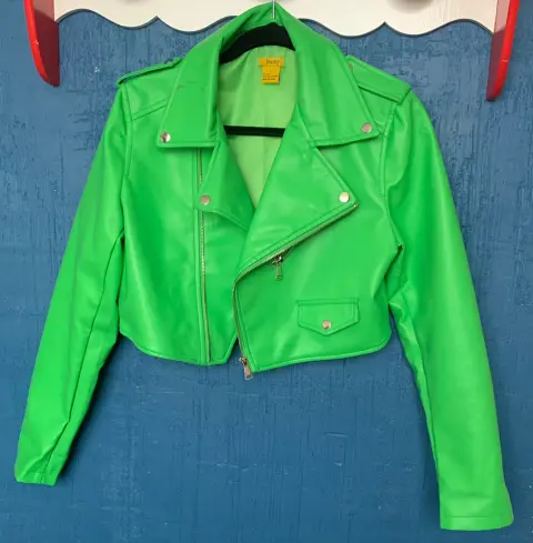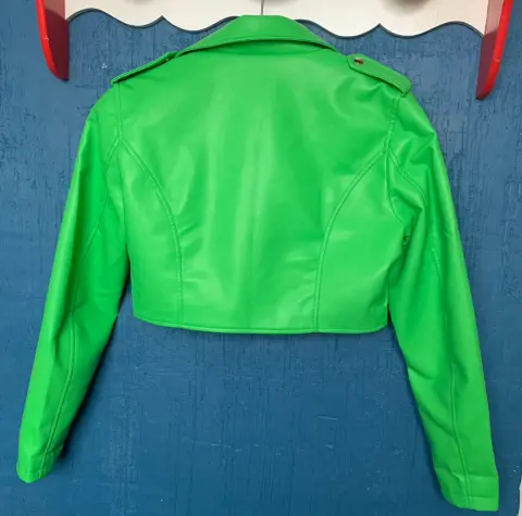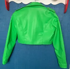Chamarra torerita en vinipiel muy suave en color verde esmeralda, casi nueva talla Grande pero es adecuado para alguien talla M porque es un poco justa