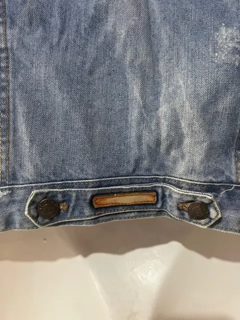 Chamarra Denim azul claro marca Zara línea Trafaluc la etiqueta dice L pero es en realidad para una chica talla XS medida de hombros 38 cm y largo 49cm