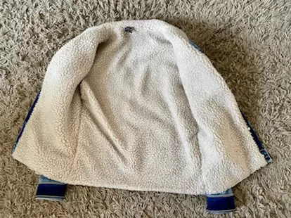 Chamarra mezclilla con borrega, dice talla G pero queda Perfecto a xs- s sin cerrar , supongo era talla kids.Hermosa y calientita