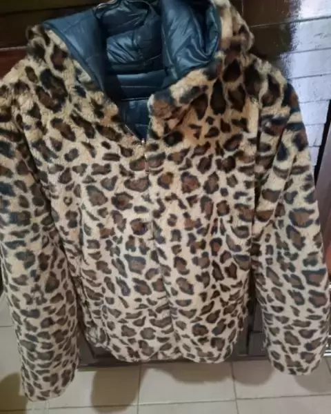 Chamarra doble vista. Chamarra doble vista color negro y animal print de leopardo talla XL es super suave el peluche, prácticamente nueva
