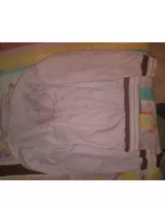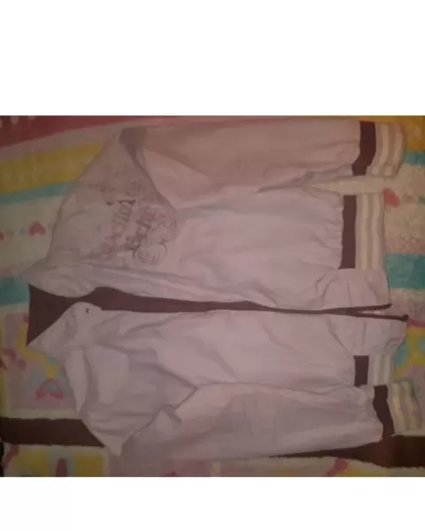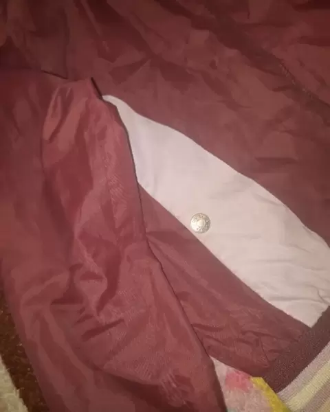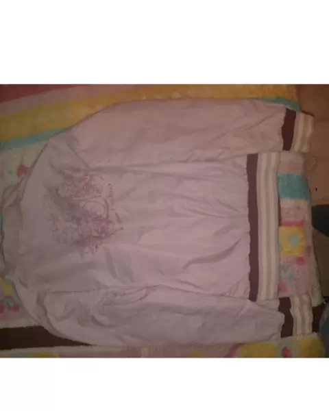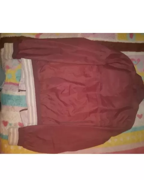 Chamarra doble vista, es de tela como tipo rompe vientos, es color vino con detalles lilas y del otro lado es color lila, el unico detalle que tiene es que le falta cierre, de lo demas en excelente estado, incluye bolsas
