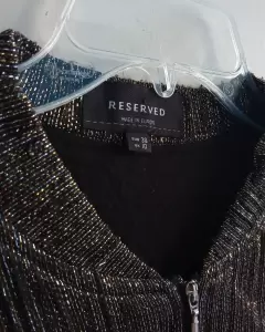 Chamarra dorado con plataedo. Chamarra plateada con dorada con cierre y bolsasDe uso, tiene algunos hilos jalados pero no se notaMarca ReservedTalla M