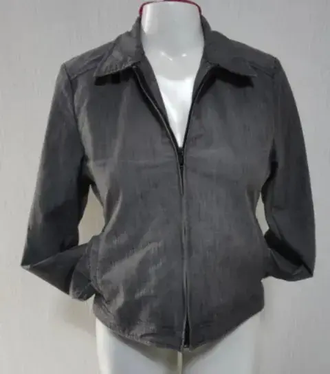 Chamarra en mezclilla gris 🩶. Padrisima chamarra con dos bolsillos funcionales,botones para ajustar el puño excelente para tus diferentes outfits,en perfectas condiciones.. medidas: Hombros-38cm./axila a axila-47cm./largo-53cm.