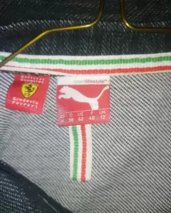 Chamarra Ferrari (Puma) tipo mezclilla, con detalles plateados, se uso muy pocas veces, esta en muy buen estado
