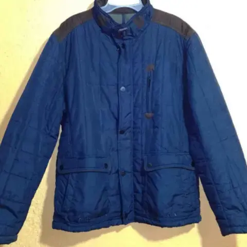 Chamarra for men Jean Baptiste Ebrard T-M. Chamarra para caballero Jean Baptiste Ebrard, talla mediana, color azul marino con bordes en terciopelo café en bolsillos y cierres. Tiene su cierre y solapa además de sus bolsillos internos y externos. Está en en perfectas condiciones.