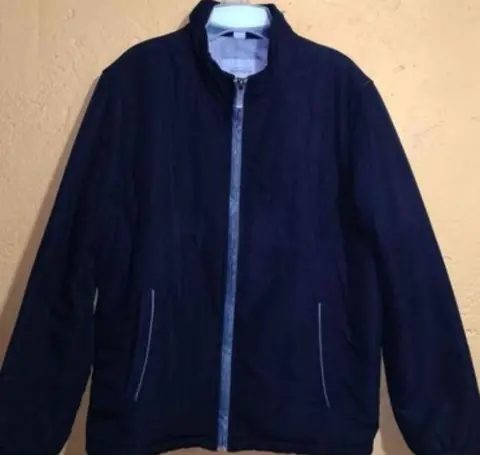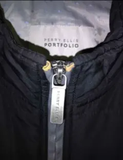 Chamarra para caballero marca Perry Ellis, talla M, color negro, tiene dos bolsillos externos y dos internos, en excelentes condiciones (único detalle en el cierre principal que la base y la punta se peló un poco, como se ve en las fotos
