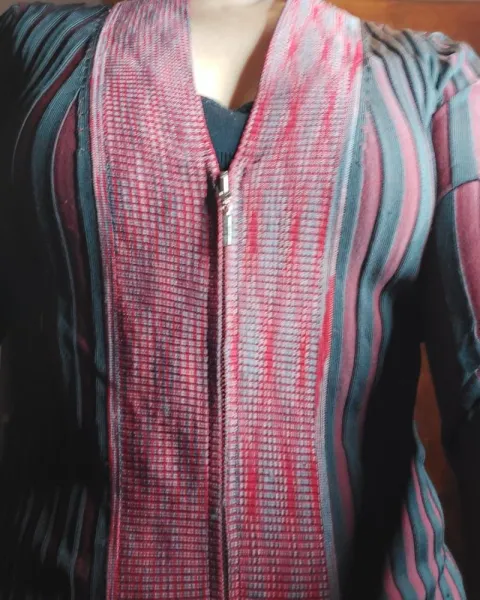 Hermosa chamarra fresca, estira mucho la tela esta muy linda, es vino/rojo con gris oscuro, te va encantar! Se moldea a tu cuerpo. (Es color entre vino y rojo con gris) queda a talla XS, S y M.