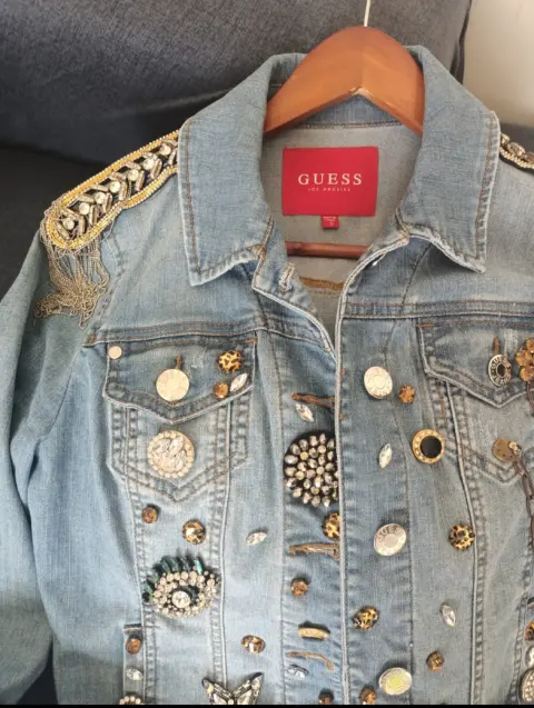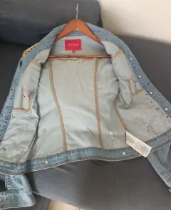 Chamarra Guess con apliques. Hermosa chamarra de mezclilla con apliques de cristal, llega a la cadera fiel a su talla, dale un toque único y divertido a tu outfit