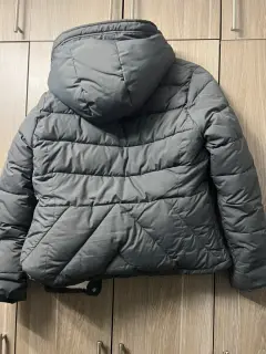Chamarra gris con borrega pachoncita súper calientita de cierre al frente y botones, trae gorro y bolsas al frente con cierre. Talla XL que puede quedar L