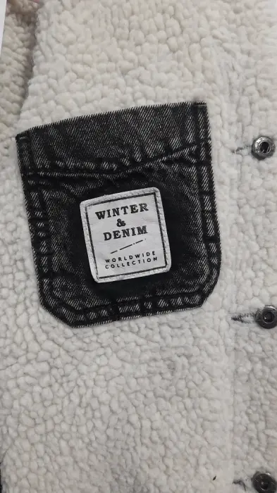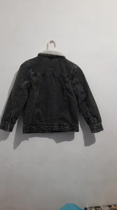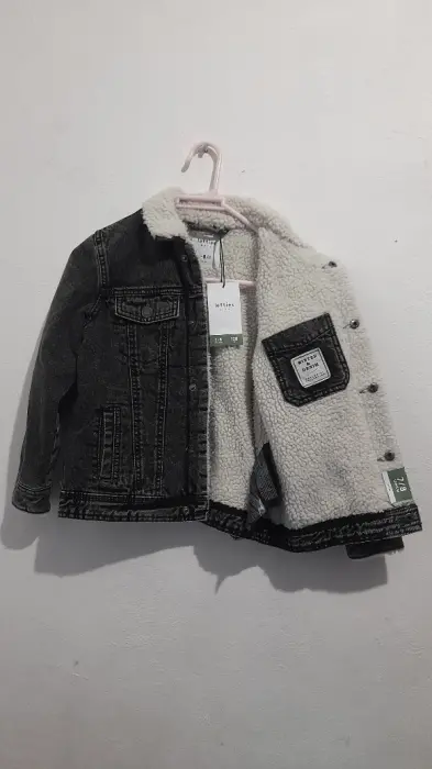 CHAMARRA INFANTIL DE MEZCLILLA ABORREGADA NEGRA CON BOLSA INTERNA, TALLAS 8, 12 Y 14