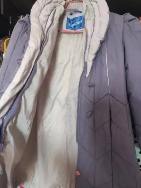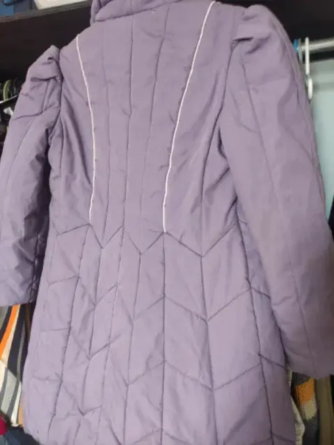 Chamarra invernal para niña. Bonita chamarra de frío para niñaTalla 8 Color morado Marca Rothschild Detalles: falta 1 botón , no afecta