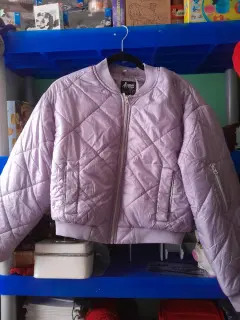 Chamarra Juvenil. Color morada, talla G, cuenta con cierre en una manga, no tiene ni un detalle