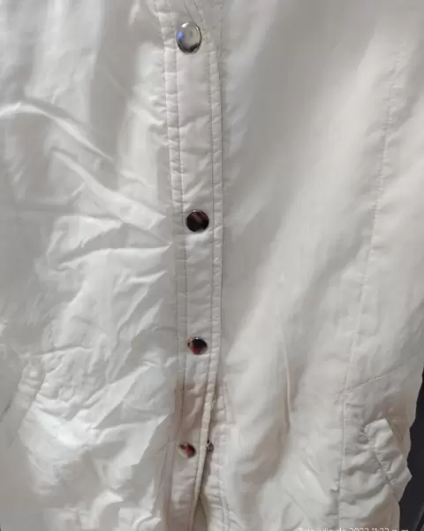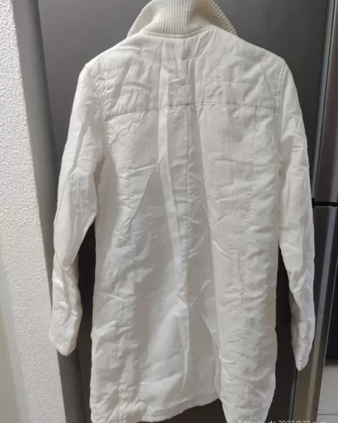 Bonita chamarra larga color blanca en excelente estado con bolsas a los lados