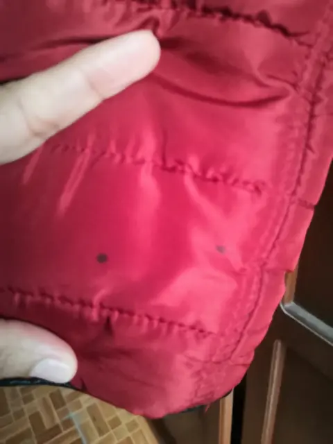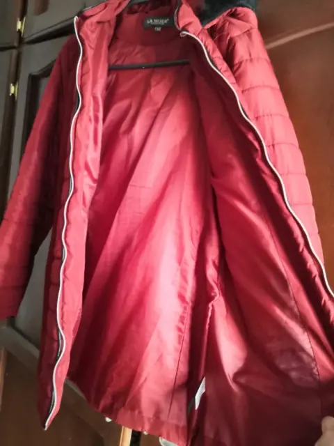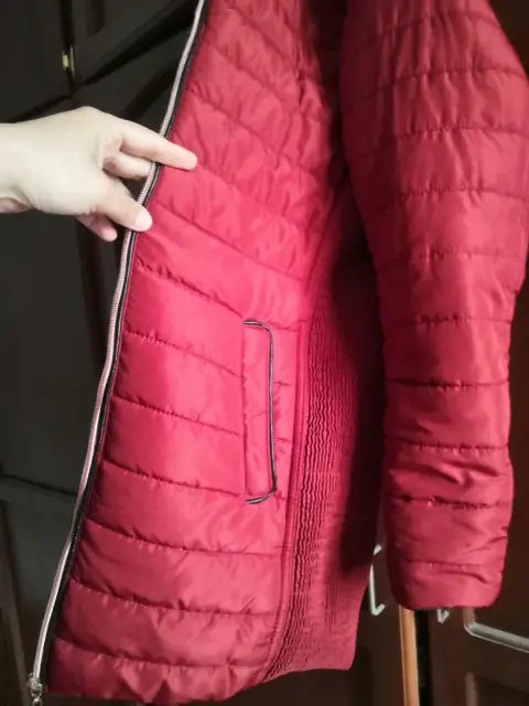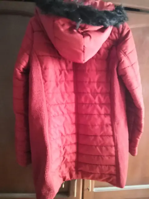 Chamarra larga para frio. Chamarra larga talla S color rojo ladrillo, en excelente estado, muy calientita, tiene dos puntitos negros en una de las manga lo puedes apreciar en la última imagen.