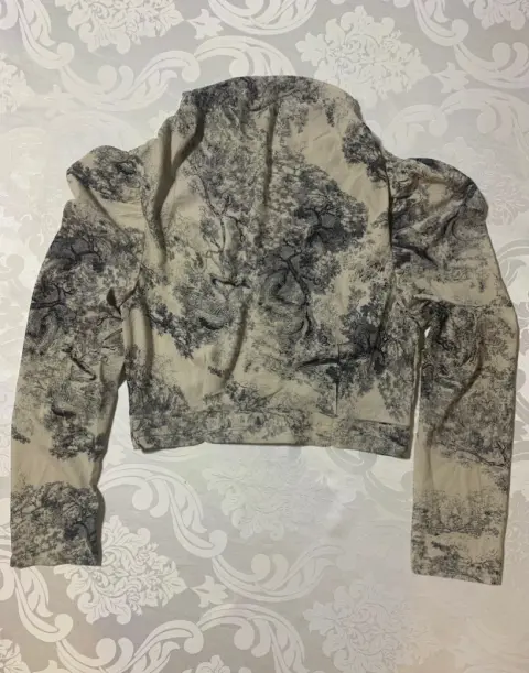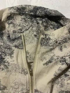 Chamarra ligera, manga larga, cuello alto y cierre enfrente. Tela de poliéster, no estira.Medidas/ busto: 43 cm, cintura: 39 cm, largo: 47 cm