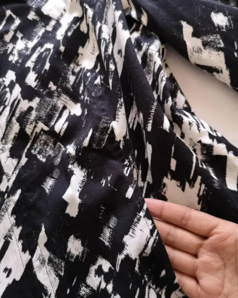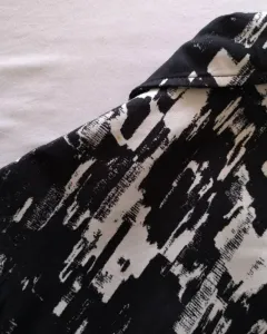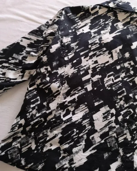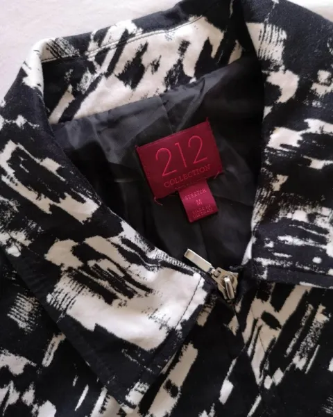 Chamarra ligera blanca con negro. Chamarra ligera, se puede usar en cualquier época del año, con estampado que la hace muy versátil, sólo tiene una mini mancha en la parte de atrás que se aprecia en la 4ta foto, casi no se nota