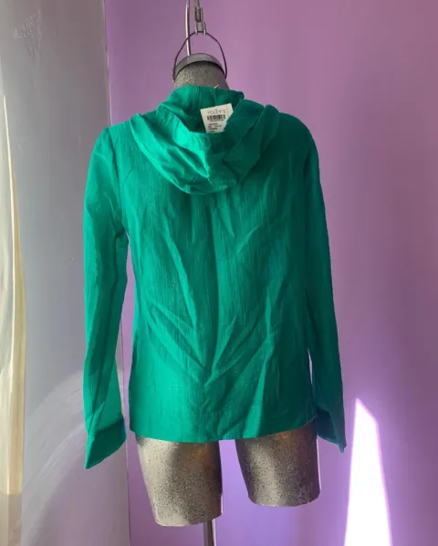 Chamarra ligera foleys. Precioso blusón en tonos naranjas, manga acampanada y escote en V con una cinta. Va bien a una talla chica y mediana. Medidas: 70cm de largo, 43cm de axila a axila y 57cm de manga.