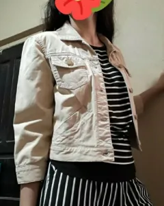En excelente estado! No le faltan botones y la tela luce muy bien! Es talla MDe Axila a axila cerrada mide 50 cm de el area de la cintura mide 44 cm De hombro a hombro 43 cm del largo de manga 46 cmDebes escoger 3 cosas de mi clóset con el mismo signo y pagar la de mayor valor