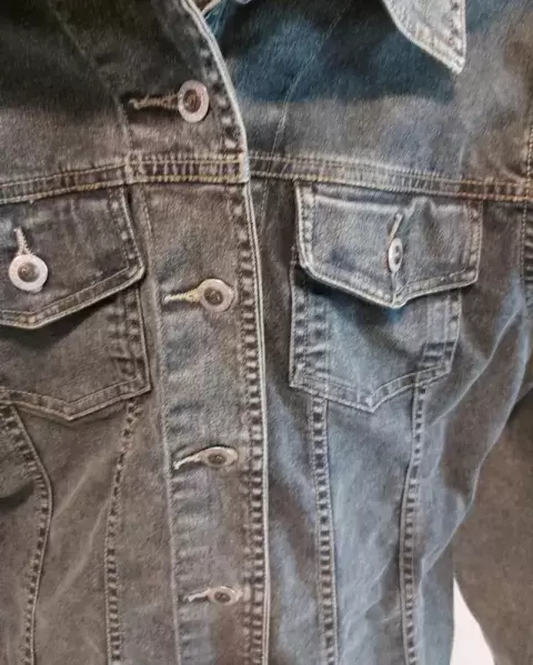 Chamarra mezclilla saax tiene tonalidades verdes.Muy ligera y cómoda