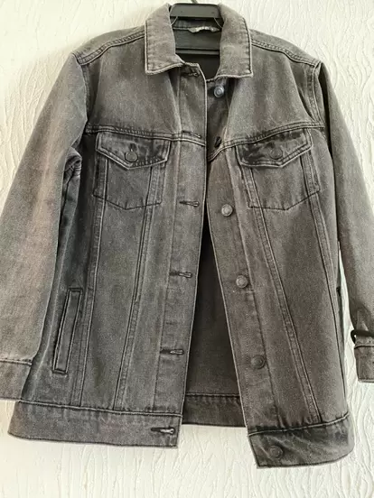 Chamarra mezclilla gris oversize. Talla chica, chamarra de mezclilla con una sola puesta. En excelentes condiciones, sin detalles.