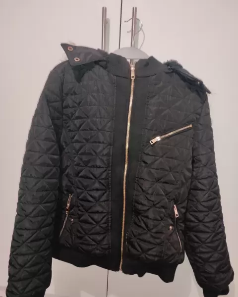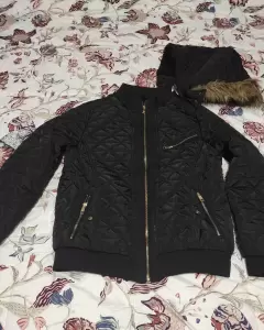 Chamarra negra. Por dentro tiene peluche Gorro desmontable,muy calientita Cierres dorados