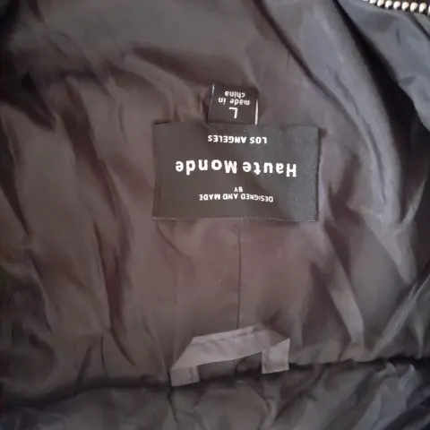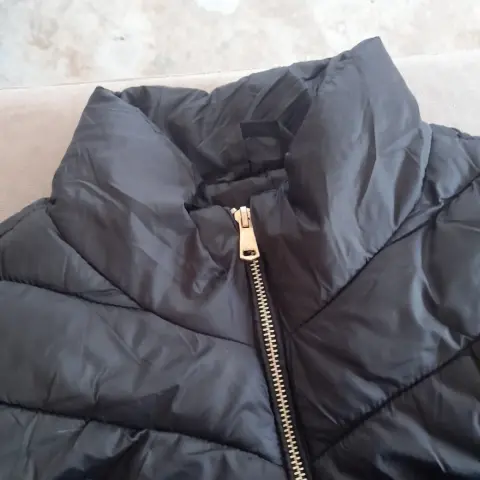 Ligera , suave y abrigadora. Talla L , negra, cinturón que se puede quitar de elástico negro con hebilla dorada. Excelentes condiciones se uso dos veces