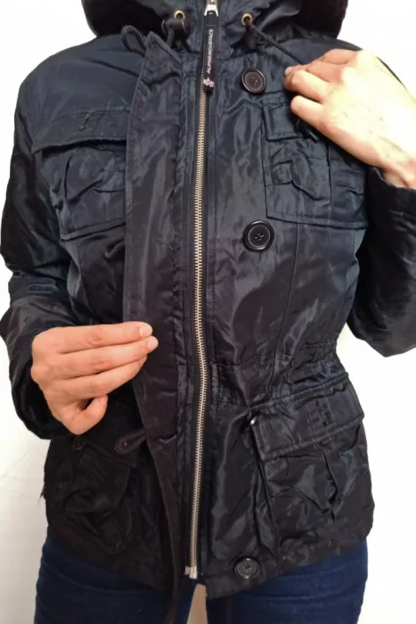 Marca: Alpha IndustriesTalla: S*Especificaciones:Ajustable de la cintura por dentro (foto 3), 4 bolsas externas 2 arriba 2 abajo, tela impermeableSin detalles.Medidas:Axila a axila: 48 cmLargo desde hombro: 57 cmLargo de manga: 59 cm