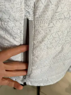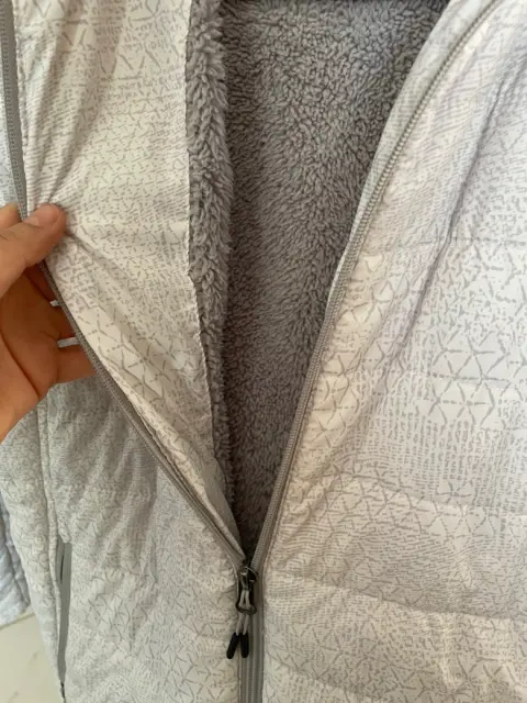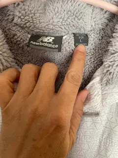 Chamarra NEW BALANCE. Puesta una vez, color gris claro y blanco talla L