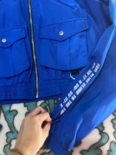 Chamarra parachute. Camarra ligera corta con detalles en plata elastico en mangas bolsas en frente
