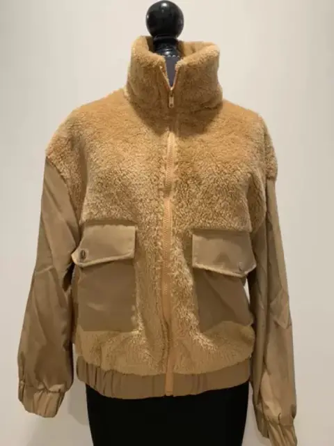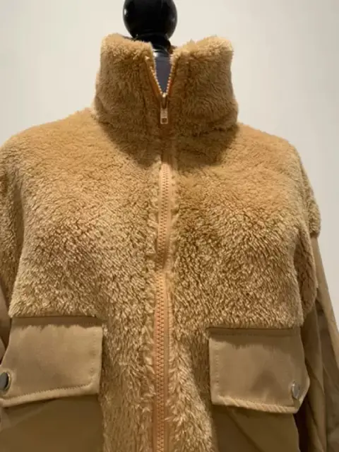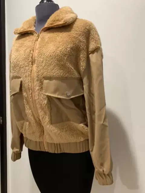 CHAMARRA PELUCHE CAMEL TALLA M. Preciosa y súper calientita chamarra, tiene peluchito, por lo cual es súper calientita. Tienebolsas funcionales al frente y es bellísima. Medidas axila a axila 58 cm, hombros 53 cm, largo 57 cm. La talla dice 0XL pero viene muy reducida! Puede quedar a una M y queda holgada o una G