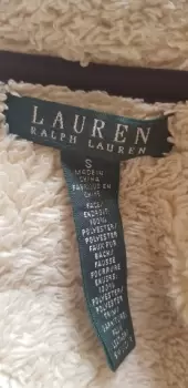 Chamarra Ralph Lauren cafe talla S. Hermosa chamarra café con forro de borrega beige talla S en buen estado, hermosa te cubrirá del frío solo se utilizó 3 veces el único detalle