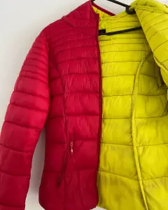 Chamarra roja (amarilla por dentro), calientita, en buenas condiciones, talla L pero le queda a una M.