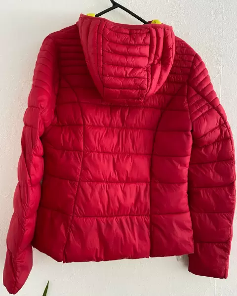 Chamarra roja. Chamarra roja (amarilla por dentro), calientita, en buenas condiciones, talla L pero le queda a una M.