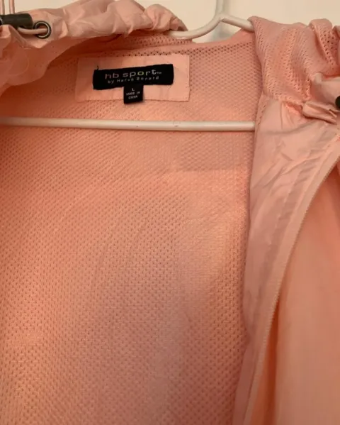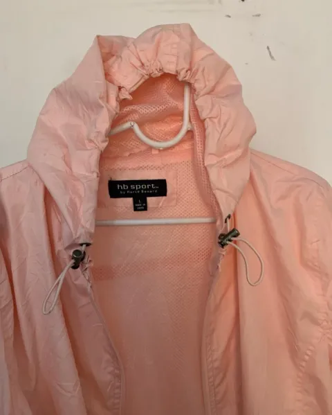Chamarra Rompe viento Dama. Chamarra hermosa ideal para salir a correr es ajustable dice talla L puede medrar una M también trae sus bolsas al costado y puede ajustarse , cuenta con gorro el color está entero no tiene detalle ni esta rota