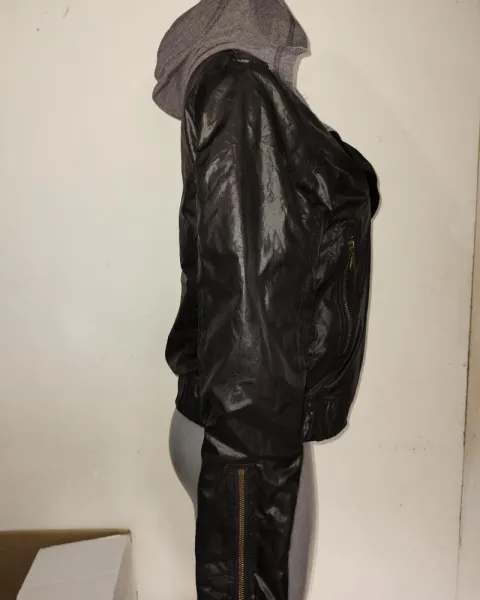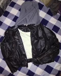 Chamarra con detalle en el interior frangas grises con amarillo.Gorro color grisCon detalles de cierres en las mangas Resorte en el borde inferiorBuen estado y aún súper precios